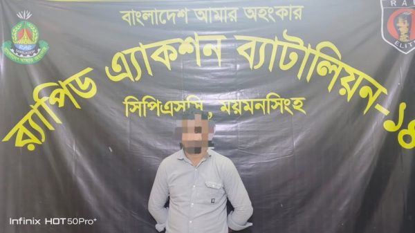 ১। মামলার এজাহার সূত্রে জানা যায় যে, এজাহারনামীয় প্রধান ধর্ষক বাদশা মিয়া(২৬) এর সাথে ভিকটিমের প্রেমের সম্পর্ক ছিল। সেই সুবাদে ব্রহ্মপুত্র নদের জঙ্গলা এলাকায় গত ১৬ ডিসেম্বর ২০২৫খ্রিঃ সন্ধ্যা অনুমান ১৮৩০ ঘটিকায় দেখা করতে গেলে ধর্ষক বাদশা মিয়া ভিকটিমকে জোরপূর্বক তার ইচ্ছার বিরুদ্ধে ধর্ষণ করে। পরবর্তীতে ধর্ষক বাদশা মিয়া ধৃত ধর্ষক ফরিদ (৩২), জেলা-ময়মনসিংহকে সহ এজাহারনামীয় অন্যান্য ধর্ষকদের মোবাইল মারফত ডেকে এনে পরস্পর যোগসাজসে পালাক্রমে ধর্ষণ করে। উক্ত ঘটনায় ভিকটিম নিজে বাদী হয়ে ময়মনসিংহ জেলার ত্রিশাল থানায় গণধর্ষণ মামলা দায়ের করেন। যার ত্রিশাল থানার মামলা নং-১৩, তারিখ-১৯ ডিসেম্বর ২০২৫খ্রিঃ, ধারা-২০০০(সংশোধনী/২০২৫) সালের নারী ও শিশু নির্যাতন দমন আইনের ৯(৩)/৩০। উক্ত মামলা রুজুর পর সিপিএসসি, র্যাব-১৪, ময়মনসিংহ ছায়া তদন্ত সহ পলাতক ধর্ষকদের গ্রেফতারে তৎপর হয়। ২। এরই প্রেক্ষিতে, সিপিএসসি, র্যাব-১৪ ময়মনসিংহ এর আভিযানিক দল ধৃত ধর্ষকের বর্তমান অবস্থান নিশ্চিত হয়ে ২৪ ফেব্রুয়ারি ২০২৬খ্রিঃ অনুমান ১৪:১০ ঘটিকায় ময়মনসিংহ জেলার সদর থানার টাউনহল এলাকায় অভিযান পরিচালনা করে উক্ত গণধর্ষণ মামলার ধর্ষক ফরিদ (৩২), জেলা-ময়মনসিংহকে গ্রেফতার করতে সক্ষম হয়।