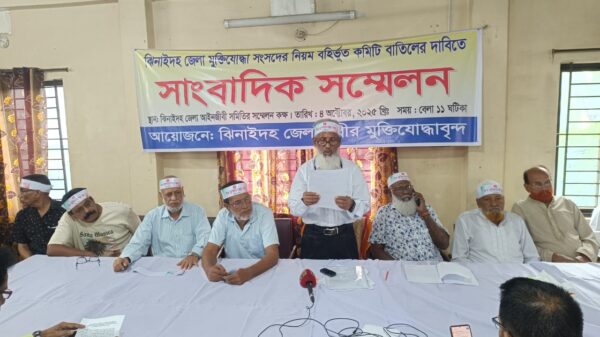 সংবাদ সম্মেলনে উল্লেখ করা হয়, দেশের সরকার পরিবর্থন হলেও “দেশকে স্বাধীন করার জন্য জীবন বাজি রাখা মুক্তিযোদ্ধাদের সঙ্গে প্রতারণা করা হচ্ছে। ষড়যন্ত্রের মাধ্যমে মুক্তিযোদ্ধা সংসদকে প্রশ্নবিদ্ধ করার অপচেষ্টা আমরা কোনোভাবেই মেনে নেব না।” অভিযোগ করা হয়, গত ৫ জুলাই কেন্দ্রীয় কমান্ড কাউন্সিলের সভায় স্পষ্ট সিদ্ধান্ত হয়, জেলা কমান্ড গঠন করতে হবে উচ্চতর ট্রেনিংপ্রাপ্ত মুক্তিযোদ্ধাদের নিয়ে। যেখানে একাধিক কমিটি থাকবে, সেখানে সমঝোতা অথবা কেন্দ্রীয় নেতাদের উপস্থিতিতে মুক্তিযোদ্ধাদের মতামতের ভিত্তিতে কমিটি গঠনের কথা বলা হয়। এছাড়া বিগত সরকারের ঘনিষ্ঠ সহযোগী কিংবা অবৈধ সুবিধাভোগীদের বাদ দেওয়ার নির্দেশনা ছিল। কিন্তু এসব নির্দেশনা উপেক্ষা করে ঝিনাইদহ জেলা কমান্ড গঠিত হয়েছে বলে অভিযোগ করেন মুক্তিযোদ্ধারা। অভিযোগে দাবী করা হয়, অনুমোদিত কমিটির ১ নং আহ্বায়ক, ২ নং যুগ্ম আহ্বায়ক ও সদস্য সচিব এই তিনজনের কেউই উচ্চতর ট্রেনিংপ্রাপ্ত মুক্তিযোদ্ধা নন। বরং তাঁরা বিগত সরকারের ঘনিষ্ঠ ছিলেন এবং অবৈধ সুযোগ-সুবিধা ভোগ করেছেন। এছাড়া জেলার পক্ষ থেকে চারটি কমিটি জমা দেওয়া হলেও প্রস্তাবিত ৩ টি কমিটির কাউকে না জানিয়ে গোপনে একটি প্যানেল থেকে কমিটি অনুমোদন দেওয়া হয়। ঘোষিত কমিটির আহ্বায়কের ছেলে বিগত ফ্যাসিস্ট সরকারের নিয়ন্ত্রিত মুক্তিযোদ্ধা সন্তান কমান্ডের সদস্য সচিব। উপরন্তু ঘোষিত কমিটির ১১ সদস্যের মধ্যে ৬ জনই পদত্যাগ করেছেন, ফলে গঠিত ওই কমিটির কোনো বৈধতাই নেই। সংবাদ সম্মেলনে মুক্তিযোদ্ধারা হুঁশিয়ারি উচ্চারণ করে বলেন, “বর্তমান জেলা কমান্ড অবৈধ। অবিলম্বে এ কমিটি বাতিল করে কেন্দ্রীয় নেতৃবৃন্দের উপস্থিতিতে মুক্তিযোদ্ধাদের মতামতের ভিত্তিতে নতুন কমিটি গঠন করতে হবে।