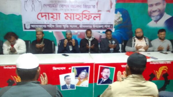 বিএনপি চেয়ারপার্সন ও সাবেক প্রধানমন্ত্রী বেগম খালেদা জিয়ার রোগমুক্তি ও সুস্থতা কামনায় জীবননগরে ছাত্রদল ও শ্রমিকদের আয়োজনে দোয়া মাহফিল অনুষ্ঠিত হয়েছে। সোমবার বিকেলে জীবননগর ডিগ্রি কলেজ ও জীবননগর মুক্তমঞ্চে এই